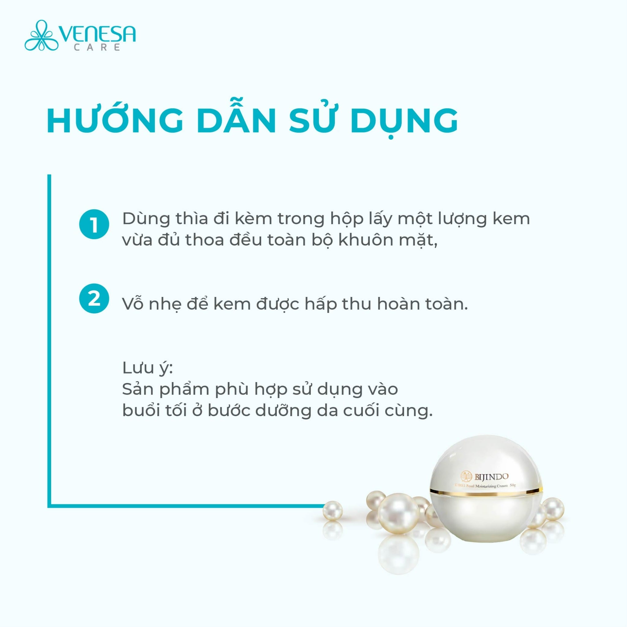 Lưu ý: Sản phẩm phù hợp sử dụng vào buổi tối ở bước dưỡng da cuối cùng.
