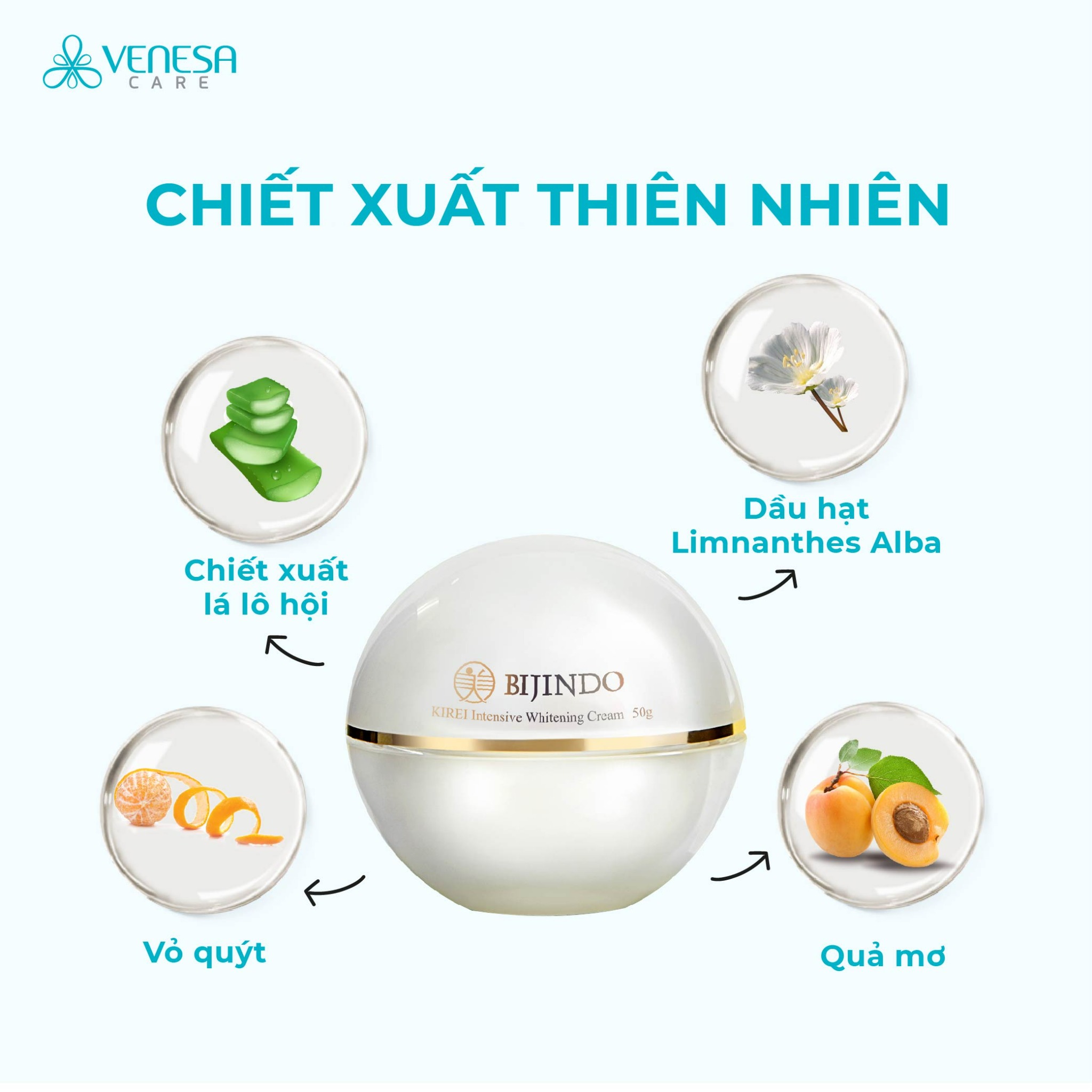 * Sản phẩm Kem Dưỡng Da Trắng Sáng Chuyên Sâu Bijindo Kirei hiệu quả chứa thành phần thiên nhiên quý hiếm :
